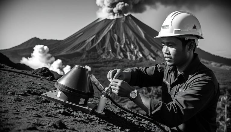 Pemantauan: Seismograf, deformasi tanah (GPS, InSAR), emisi gas vulkanik (SO₂, CO₂), suhu kawah.